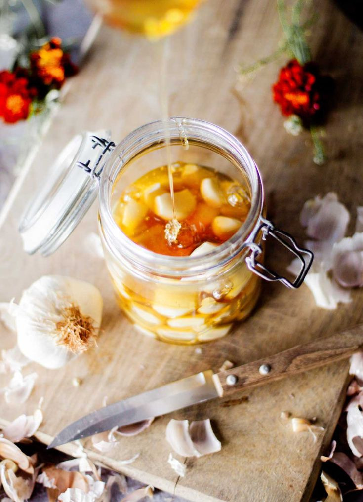 - 완전히 식은 마늘을 유리병에 넣고, 꿀을 마늘이 잠기도록 충분히 부어주세요.