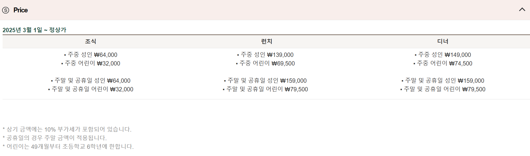 앰배서더 서울 풀만 '더 킹스의 식사 가격 홈페이지 켑쳐