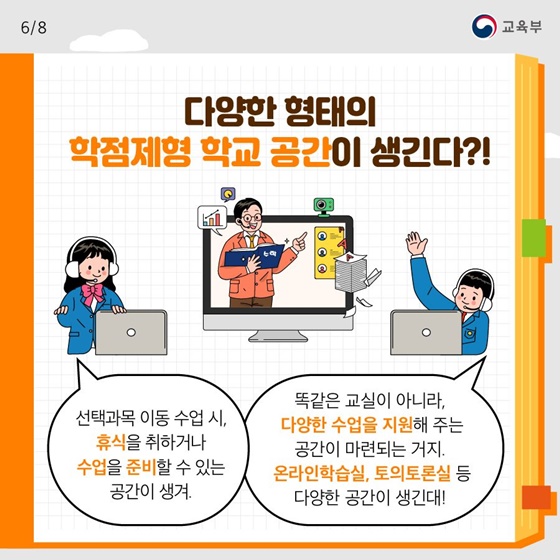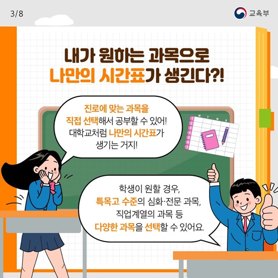 기존처럼 한 반 전체가 같은 과목을 듣는 것이 아니라, 학생이 개별 시간표에 따라 교실을 이동하며 수업을 듣는 교과 이동형 수업으로 전환됩니다.